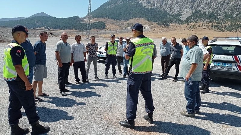 EĞİTİM VE BİLGİLENDİRME ÇALIŞMALARIJandarma ekipleri, D-687 Devlet Karayolu'nun geçtiği İbradı ilçesinde, hayvan sürülerinin yolda karşıya geçiş yaptığı alanlarda trafik kazalarını azaltmak için çobanlar ve köylülerle buluştu. Güvenli trafik eğitimi veren ekipler, sürü sahiplerine alt geçitlerin kullanımını, gece şartlarında reflektif kıyafetlerin önemini anlattı. Gece boyunca hayvanların yola çıkışlarını engellemeye yönelik bilgilendirmeler yapıldı.