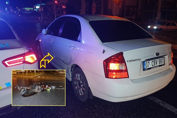Kaza; Alanya-Antalya D-400 Karayolu Batı Side Köprülü Kavşak yan yolda meydana geldi. Edinilen bilgiye göre, Alanya istikametinden Antalya istikametine seyir halindeki Özcan U. idaresindeki 07 CBV 960 plakalı otomobil ile Side Mahallesi istikametinden gelip Çakalderesi yönüne gitmekte olan Emre Barkın Ş. yönetimindeki 07 CFE 415 plakalı motosiklet, Total Kavşağı’nda çarpıştı.