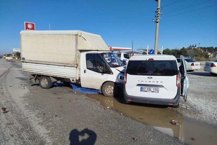 Manavgat-Antalya D-400 Karayolunda Manavgat istikametinden Antalya istikametine giderken, Hatipler Yenimahalle kavşağından tali yola dönen M.Y.’nin kullandığı 07 CGL 114 plakalı hafif ticari aracın tali yolda Gültepe istikametinden Manavgat şehir merkezi istikametine seyir halindeki H.K.’nin kullandığı 07 BGV 43 plakalı Kamyonet ile çarpışması sonucunda meydana geldi. Güvenlik kamerasına saniye saniyesine yansıyan kazada hafif ticari araç sürücüsü yaralandı. Yaralı, 112 sağlık ekiplerinin olay yerindeki müdahalesinin ardından ambulansla hastaneye kaldırıldı.