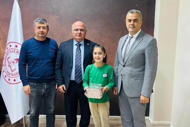 Büyük bir başarıya imza atarak Manavgat’ı gururlandıran Kumsal Seltuğ, başarısının ardından Manavgat İlçe Milli Eğitim Müdürü Ali Hakan Öz tarafından makamında ağırlandı. Öğrenciyle yakından ilgilenen İlçe Milli Eğitim Müdürü Öz, Kumsal’ı tebrik ederek başarısından dolayı ödüllendirdi.
