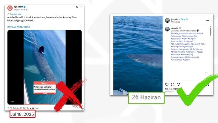 Yapılan incelemede, söz konusu videonun Norveçli bir balıkçı tarafından 26 Haziran 2025’te Norveç’te kaydedildiği ve kendi sosyal medya hesabında paylaşıldığı tespit edildi.