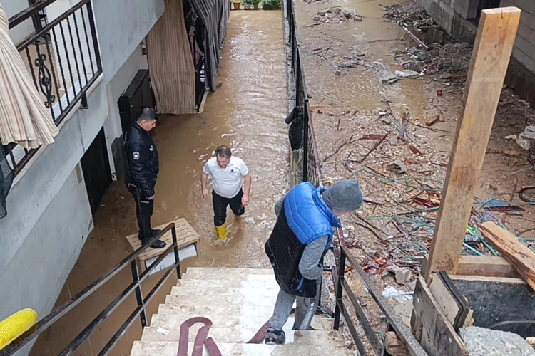 Manavgat'ta sabah erken saatlerde başlayan şiddetli yağış nedeniyle çok sayıda evin zemin katı sular altında kaldı Şelale Caddesi'nde zemin katta su baskını yaşanan bir evden mahsur kalanlar itfaiye ve polis ekipleri tarafından kurtarıldıktan sonra tedbir amaçlı olarak ambulansla hastaneye kaldırıldı.