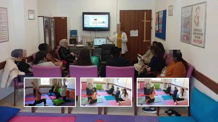 Manavgat Devlet Hastanesi Gebe Okulu'nda yoga ve pilates dersleri uzman ekipler eşliğinde devam ediyor. 14. haftasını tamamlayan ve gebelikle ilgili herhangi bir riski bulunmayan tüm gebeleri gebe okulundaki yoga ve pilates derslerine beklediklerini ifade eden Manavgat Başhekimi Operatör Doktor Mehmet Deniz, "Gebe okulumuzda alanında uzman kişiler tarafından verilen gebelik, doğum, doğum sonu, emzirme ve yenidoğan bakımı konularını içeren gebelik eğitimlerimiz düzenli olarak devam etmektedir. 14. haftadan itibaren tüm gebelerimizi gebelik sürecini sağlıklı bir şekilde yönetmek üzere gebelik eğitimlerimize davet ediyoruz." dedi.