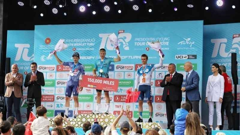 Cumhurbaşkanlığı himayesinde Gençlik ve Spor Bakanlığının destekleriyle Türkiye Bisiklet Federasyonu tarafından düzenlenen 59. Cumhurbaşkanlığı Türkiye Bisiklet Turu'nun (Tour of Türkiye 2024) ikinci gününde 190,6 kilometrelik Kemer-Kaş (Kalkan) etabı gerçekleşti. Kemer Saat Kulesi önünden startı verilen ikinci etabı, 4:43:15’lik derecesiyle World Team Astana Qazaqstan takımından Alman bisikletçi Max Kanter kazandı.171 sporcunun katıldığı Tour of Türkiye 2024’ün ikinci etabı, Kaş’a 27 kilometre uzaklıkta yer alan Kalkan Mahallesi’nde tamamlandı. Etabın ardından Kalkan’da madalya töreni düzenlendi.Kaş Belediye Başkanı Erol Demirhan’ın da katıldığı törende, dereceye giren sporculara protokol üyeleri tarafından madalya ve çiçek takdim edildi. Başkan Erol Demirhan yaptığı açıklamada, Cumhurbaşkanlığı Türkiye Bisiklet Turu’na ev sahipliği yapmaktan dolayı mutluluk duyduklarını söyledi.Organizasyonun, Kaş ilçesinin tarihi ve kültürel zenginliklerini yansıtmak ve tanıtmak açısından önemine değinen Başkan Demirhan, “Burada önemli plajlarımızdan Kaputaş’ın ve ilçemizin diğer güzelliklerini, yarışçıların ve ekran başında bu organizasyonu izleyen hemşehrilerimizin keyifli bir zaman geçirdiğini düşünüyorum” dedi.59. Cumhurbaşkanlığı Türkiye Bisiklet Turu, 28 Nisan’da İstanbul-İstanbul etabıyla sona erecek.