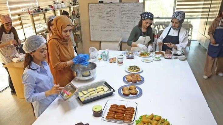 ÖNCE MUTFAKTA EĞİTİM, SONRA SERTİFİKAHer yıl binlerce kişiye iş ve meslek kapısı açan ATASEM’in ücretsiz sanat ve meslek edindirme kurslarında birinci dönem eğitimleri devam ediyor. Pastacılık, cilt bakımı ve makyaj, aşçı çırağı, el sanatları, sepet örücülüğü, yabancı dil ve elbise dikimi gibi geniş bir yelpazeye sahip kurslar arasında bu yıl en çok ilgiyi “Glütensiz Mutfak Eğitimi” görüyor.