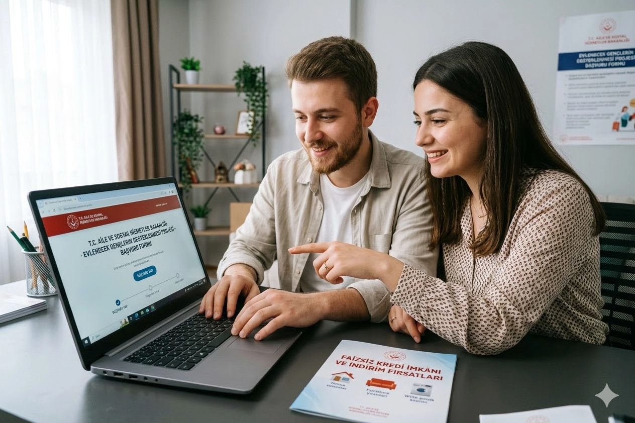 Aile ve Sosyal Hizmetler Bakanlığı, "Evlenecek Gençlerin Desteklenmesi Projesi" ile yuva kurma hazırlığındaki çiftlerin yanında olmaya devam ediyor. Proje kapsamında gençlere sunulan faizsiz kredi imkânının yanı sıra, çeşitli sektörlerdeki anlaşmalı firmalar aracılığıyla özel indirim avantajları da sağlanıyor.