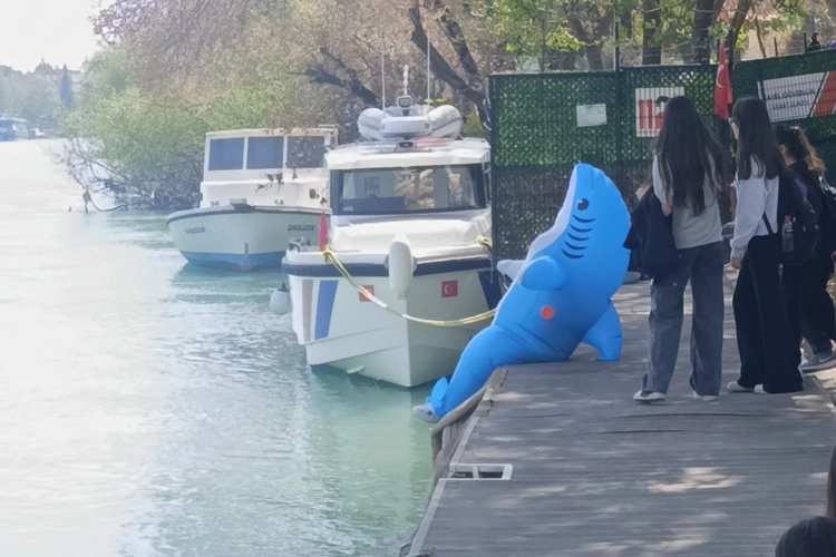 Manavgat'ın ana caddelerinde ve ırmak kenarında köpek balığı kostümüyle yürüyen genci görenler şaşkınlıklarını gizleyemedi. Vatandaşların yoğun ilgisiyle karşılaşan genç, sempatik tavırlarıyla takdir topladı.