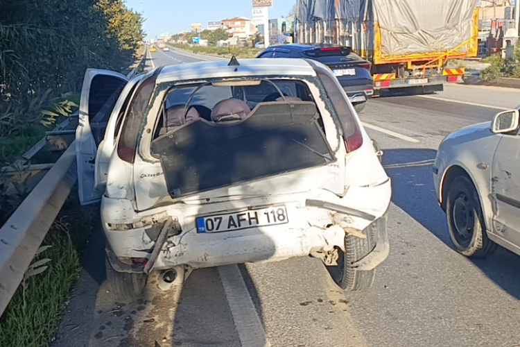 D-400 Karayolu Manavgat Hatipler mevkiinde trafik yoğunluğundan dolayı yavaşlayan 2 araca, aynı istikamette seyir halindeki otomobilin arkadan çarpması sonucu meydana gelen kazada 2 kişi yaralandı. Kazada yaralanan kadın sürücünün yanında bulunan ve kazayı burnu bile kanamadan atlatan küçük bebek, sağlıkçı abisinin kucağında annesinin tedavisini bekledi.