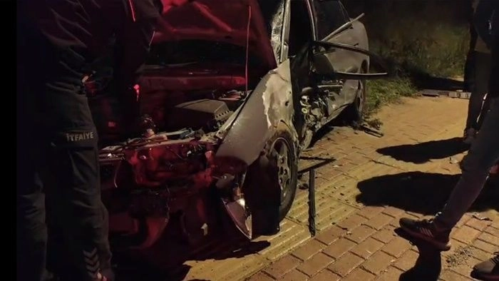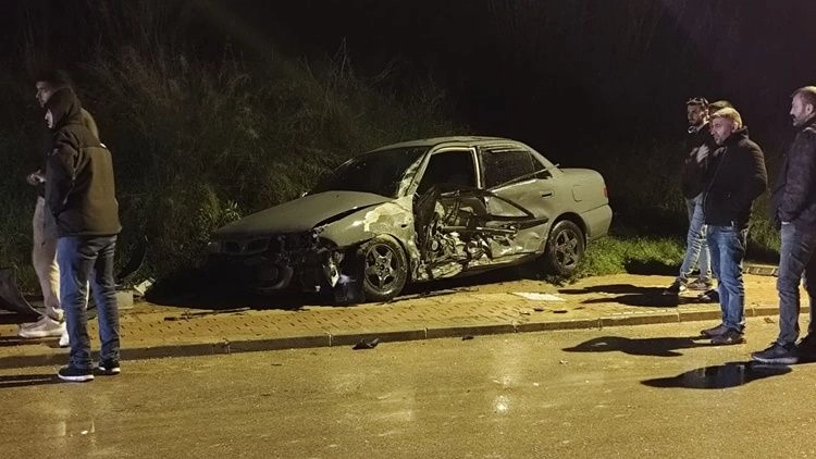 Direğe çarpan otomobil hurdaya döndü: Mucize eseri yaralanan olmadı