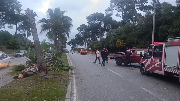 Direksiyon hakimiyetini kaybeden alkollü sürücü palmiyeyi devirdi