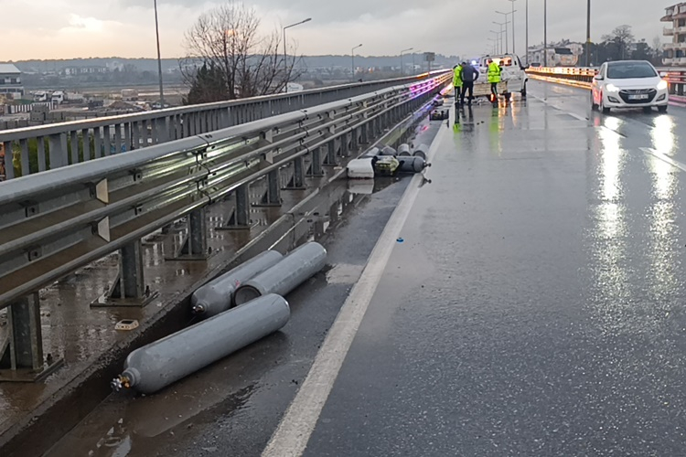 Kaza sonrası etilen gazı tüpleri köprülü kavşağa saçıldı