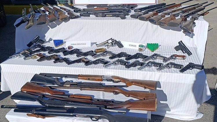 Yapılan aramalarda jandarma ekipleri; 30 adet tabanca, 27 adet av tüfeği, 30 adet şarjör, 1.173 adet tabanca fişeği ve 334 adet av tüfeği fişeği ele geçirdi. Ayrıca aramalarda 10 gram esrar maddesi ile bir adet esrar öğütücüye de el konuldu.