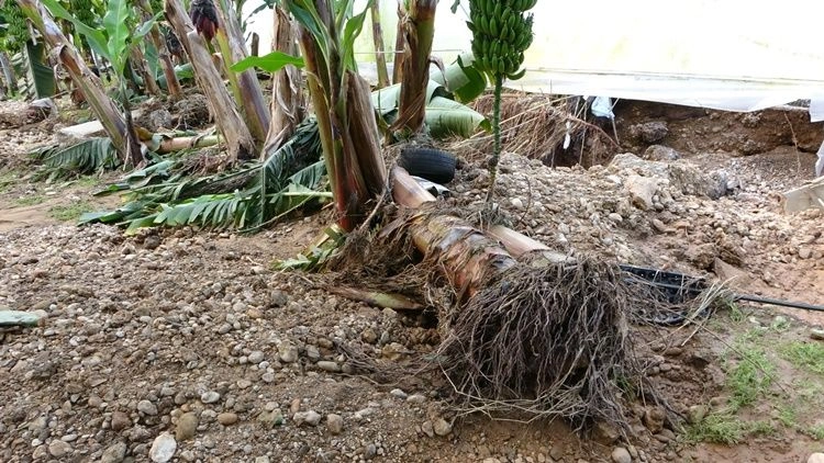 Manavgat’ın Ulukapı Mahallesi’nde muz serası sahibi olan Hayri Yüksel de “Zayiatımız çok fazla. İlçe Tarım ve Orman Müdürlüğü’nden, TARSİM’den geldiler. Tespitler yapıldı, akıbeti ne olacak onu bekliyoruz. Bu arada elimizden geldiğince kendimizde müdahale ediyoruz, düzenlemeye çalışıyoruz. Ürünlerimizde de zarar var. Suyun şiddeti betonu yerinden koparmış, ağaçları köküyle birlikte yere yatırmış, sürüklemiş. Bir hayli zayiatımız var” diye konuştu.