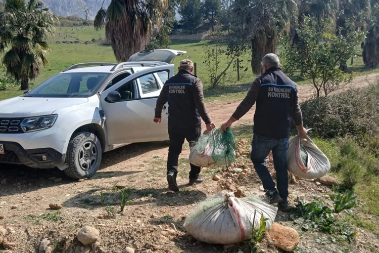 Manavgat İlçe Tarım ve Orman Müdürlüğü ekipleri, iç sularda gerçekleştirdikleri su ürünleri denetimleri kapsamında kaçak av araçlarına el koyarken, canlı balıkları suya geri bırakarak usulsüz avcılara idari para cezası uyguladı.