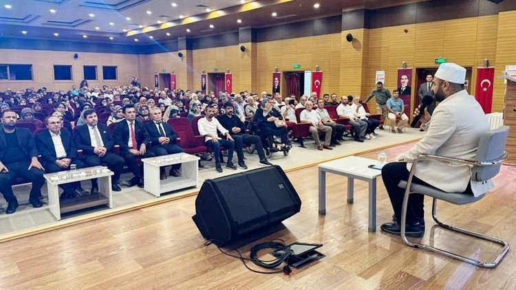 “Peygamberimiz (s.a.s), Cami ve Namaz” temalı konferansta konuşan Necmettin Erbakan Üniversitesi İlahiyat Fakültesi Öğretim Üyesi Prof. Dr. Ramazan Altıntaş ise; ‘Namazın insana edep ve ahlak kazandırdığını, kötülüklerden alıkoyduğunu vurgulayarak, ibadetlerin en makbul şeklinin Allah emrettiği için yapılan ibadet olduğunu ifade etti. Din ile bilimin yöntem farklılıklarına rağmen aynı varlığı konu edindiğini, dinin ise insanın varoluş sorusuna cevap aradığını belirten Altıntaş, namazın bireysel ve toplumsal hayata yansımalarına dikkat çekerek, ölçü ve tartıda adalet, helal kazanç ve doğru harcamanın önemine değindi. Peygamber Efendimizin (s.a.s) “Cennetin anahtarı namaz, namazın anahtarı ise temizliktir.” hadisini hatırlatan Altıntaş, namazın yalnızlıktan kurtaran, ruha şifa veren, insana güven ve zindelik kazandıran bir ibadet olduğunu ifade etti. Konuşmasının sonunda ise din görevlilerinin milletimizin birlik ve beraberliği için daima hizmette olduklarını, özellikle büyük depremler gibi zorlu zamanlarda her daim vatandaşlarımızın yanında bulunduklarını’ dile getirdi.