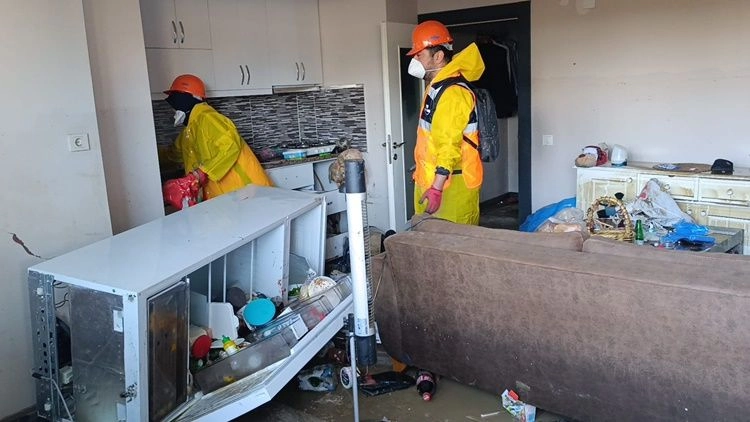 Yağmurun aniden bastırmasıyla neye uğradıklarını anlayamadıklarını belirten Zehra Hoşgör, "Aniden yağmur bastı. Rögarlardan su bastı. Herkese geçmiş olsun. Ben böyle bir afet görmefim. Su birden geldi. Buraya kadar su doldu. Kapıyı bile yerinden söktü, buzdolaplarını devirdi. Tüm malzemeleri mahvetti. Ekipler geldi. Jandarma temizliyor. Askerlerimizden Allah razı olsun. Eşyaları çıkarıp evi temizliyorlar, Geçmiş olsun, yapacak bir şey yok" dedi.